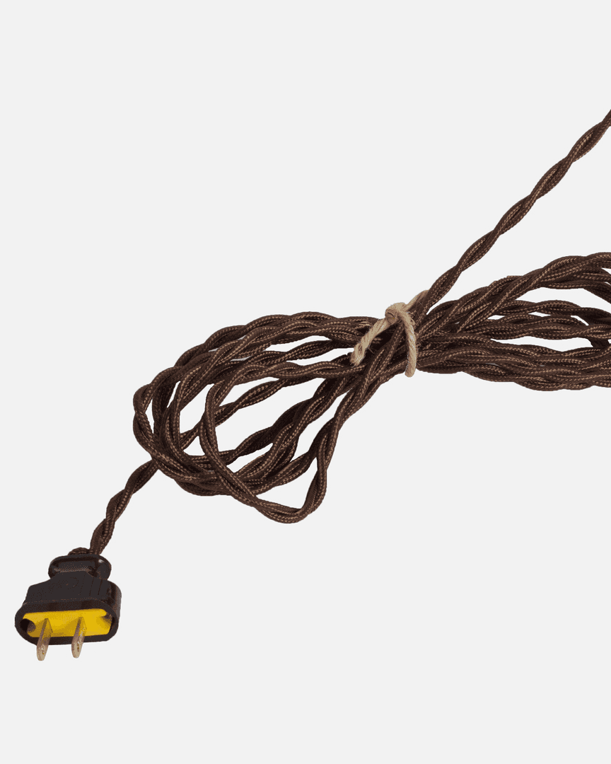- Dimensions: 21" High x 9 1/2" Deep x 6" Diameter Base, 1/8 IP Brass pipe, 1/8 IP Repurposed industrial brass plumbing pipe fittings, Solid brass standard medium (E26) socket w/ switch, Solid brass 2 1/4” shade fitter, 7” Diameter porcelain enamel metal shade w/ white interior, 8ft vintage style brown cloth covered twisted cord, Antique style brown Bakelite plug, Vintage 2 ½ pound barbell, Reclaimed honed black marble base, 8ft vintage style brown cloth covered twisted cord, Antique style brown Bakelite plug, 110-250 Volts - 60 Watt max bulb (not included), All UL Listed components